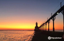 燈塔及碼頭(Lighthouse Pier)位于北美洲,美国,密歇根城,2 On the Lake, Michigan City, IN, Michigan City, IN 46360