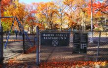 玛希斯·卡瑞纪念公园(Marcus Garvey Memorial Park)位于北美洲,美国,纽约,Madison Ave, E 120 to E 124 Streets, New York City, NY