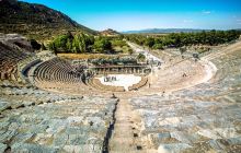 以弗所是地中海东部保存的最好的古典城市,是体验和感受罗马时代生活的好地方。作为当年罗马帝国在亚洲地区(亚细亚省)的首府,享有“亚洲第一个和最大的大都会”之称,世人说其:不是罗马,胜过罗马。这座美丽的城市一直以来是游客造访土耳其时最钟爱的地点之一,面积广阔的古城遗迹,保存至今已有两千余年的历史,如今是列入联合国教科文组织列管的古迹之一。目前的以弗所古城遗址呈西北-东南走向,总长约两公里,主要残留建筑有:石柱甬道、阿耳忒弥斯雕像、罗马皇帝多米申(Domitian)祭坛、古希腊哲学家苏格拉底壁画、基督一性论学派领袖狄奥多西浮雕、哈德良皇帝庙、圣约翰教堂、图书馆、剧场、浴室等。 查看以弗所古城详细介绍 》